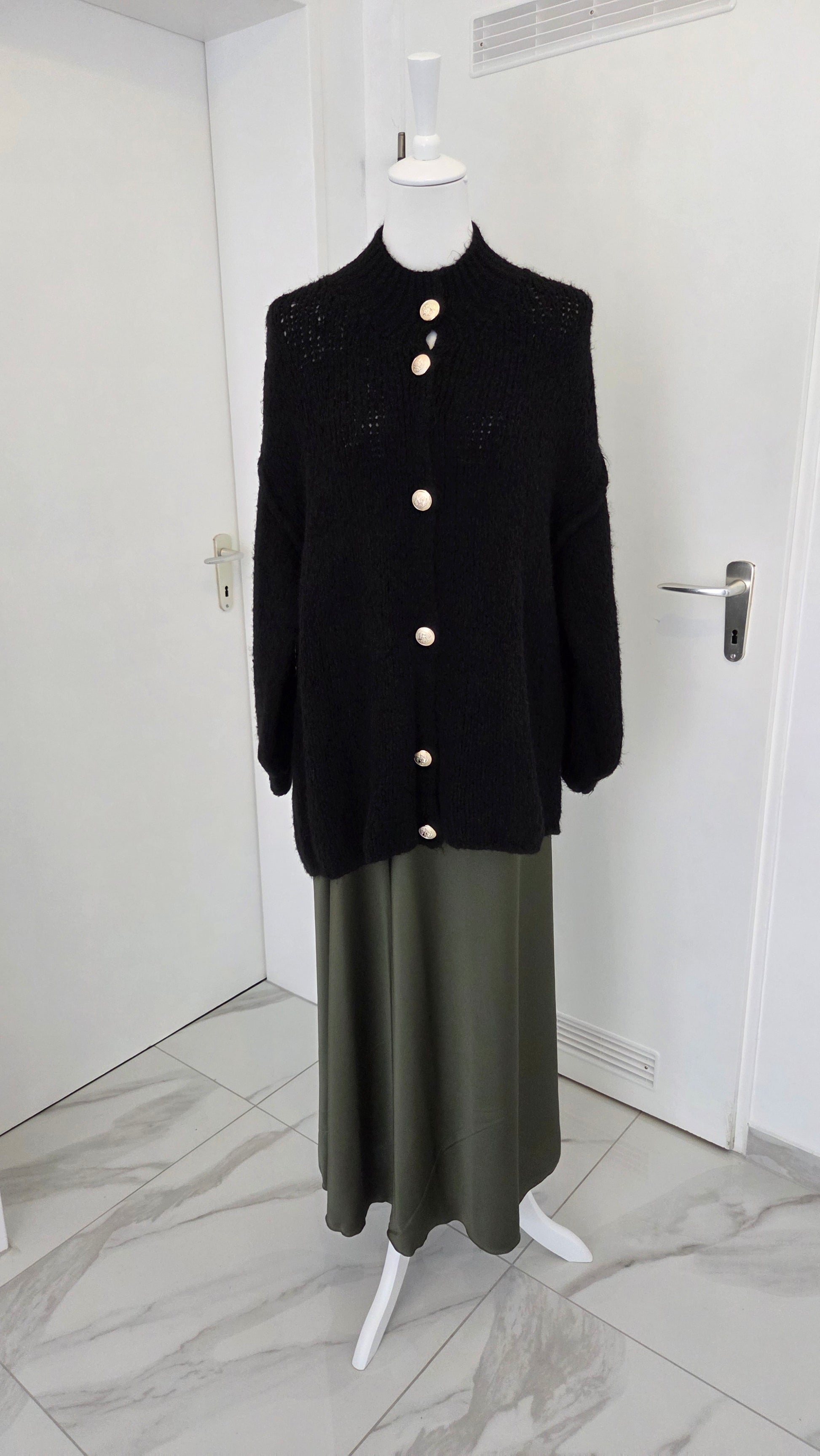 Dieser Cardigan vereint Komfort, Wärme und zeitlose Eleganz. Mit seinem lockeren Schnitt und den edlen Knöpfen ist er ein vielseitiges Kleidungsstück für jeden Anlass- ob gemütlich zu Hause, lässig im Alltag oder chic kombiniert im Büro.