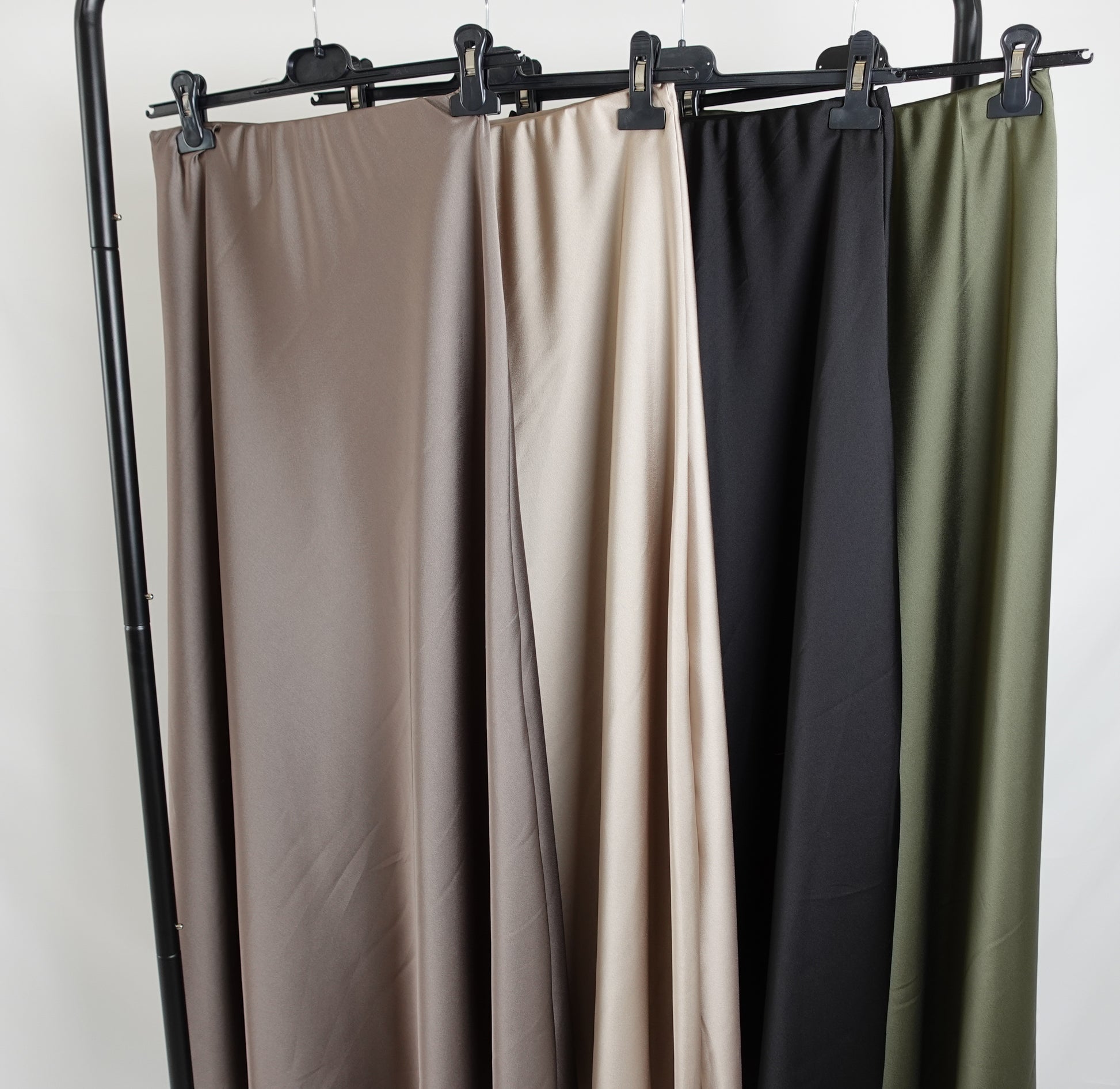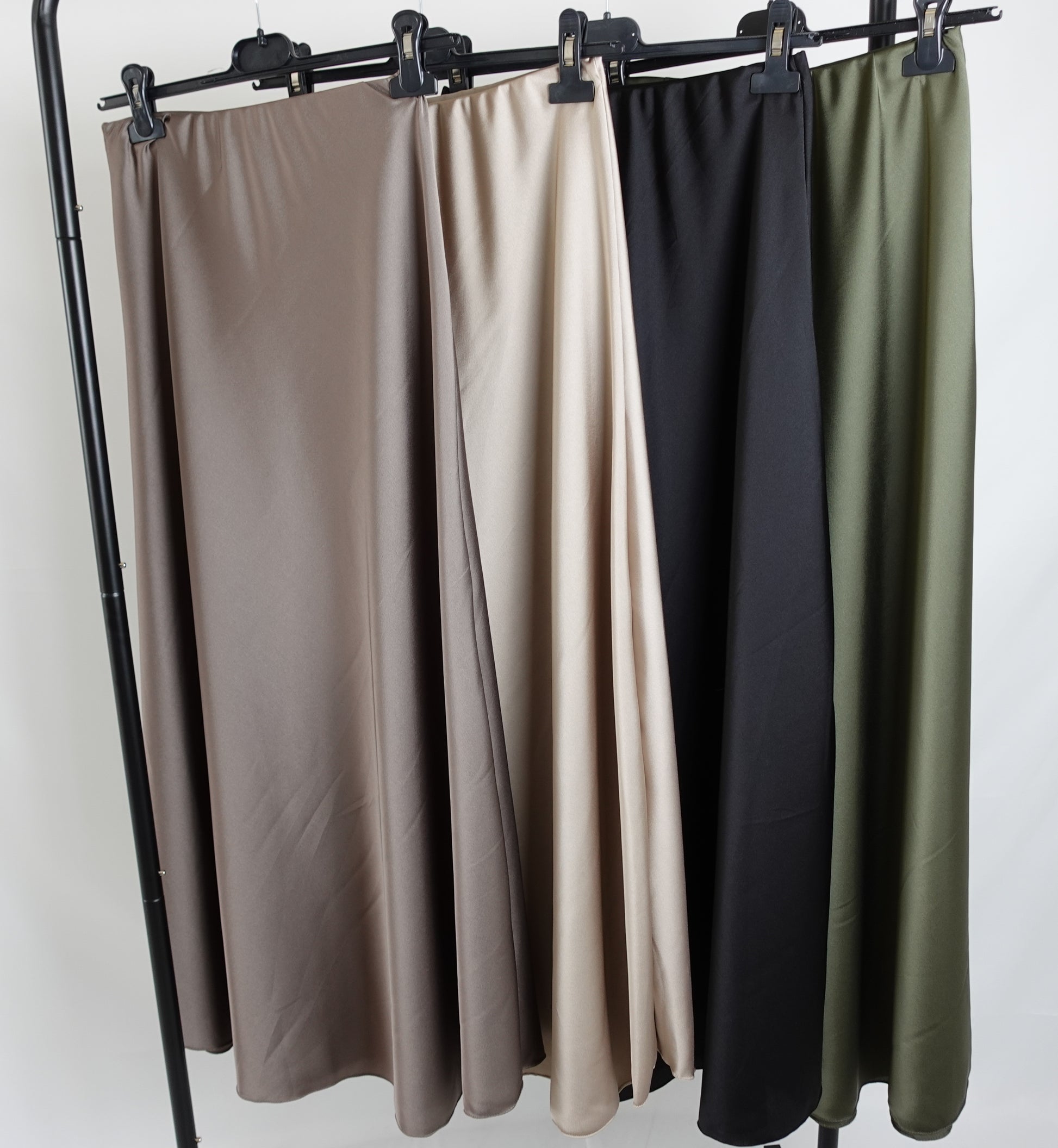 Dieser Satinrock ist ein Must-have für alle, die schlichte Eleganz und vielseitige Kombinationsmöglichkeiten lieben. Der fließende Stoff verleiht jedem Outfit eine feminine Silhouette, während der leichte Glanz für einen edlen Look sorgt.